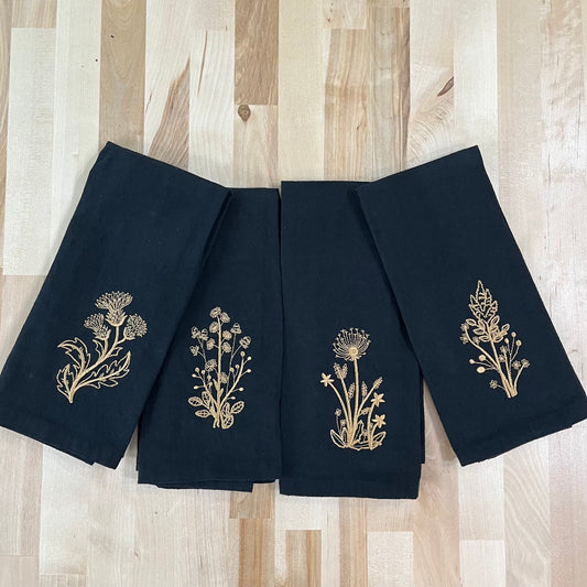 Dinner napkin - Delicate stems embroidered with gold thread on black napkins