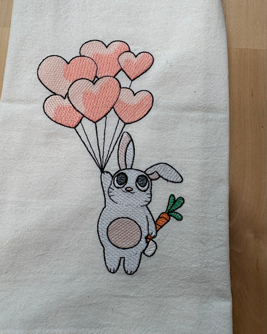 Kitchen Towel - Cute bunny holding balloons